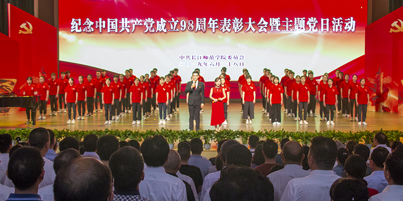 6月28日,我校拏云学生活动中心庄严隆重、气氛热烈,在中国共产党成立98周年即将到来之际,全体党员同志身着正装、佩戴党徽出席我校纪念中国共产党成立98周年大会暨“党心朗读者”主题党日活动。学校党委书记彭寿清讲授主题党课,1300余名师生党员共同接受党性教育、重温入党誓词。