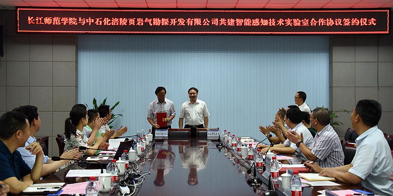 7月3日下午,学校在致远楼323会议室与中石化涪陵页岩气勘探开发有限公司举行签约仪式,双方将共建页岩气智能感知技术实验室,共同致力于光纤传感技术研发以及页岩气领域产品的应用研究。中石化涪陵页岩气勘探开发有限公司副总经理刘尧文、涪陵区生产力促进中心主任陈春名,我校校长黄大勇、副校长张明富,相关职能部门、二级学院负责人出席签约仪式。
