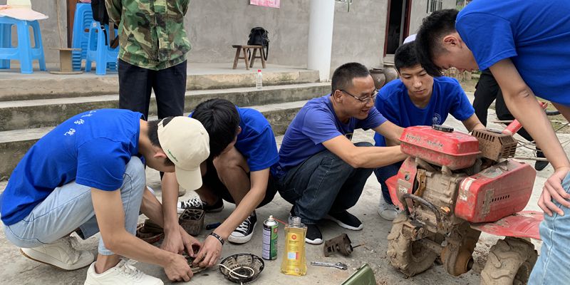 机器人工程学院科技支农志愿者服务团队来到涪陵区马武镇为建卡贫困户推广新型机械,宣传农机安全操作知识,免费为当地建卡贫困户维修农机。志愿者了解到当地村民缺乏农机使用与保养技术时,修缮农机的同时也为村民科普相关知识,围观村民听到机器正常运转的声音,纷纷竖起大拇指。