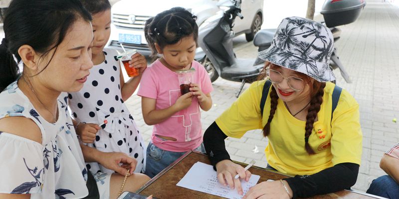 文学院志愿者分成教学组、调研组、活动组等五组在长寿区葛兰镇开展“三下乡”七彩课堂招生活动。报名现场居民身影不断增多,志愿者们耐心回答每一个家长和孩子的问题,共招收到以小学生为主的不同学段学生105名,为后期开展的七彩课堂建立良好基础。