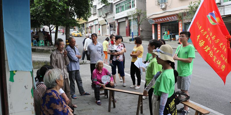 政治与历史学院“青语”理论宣讲团深入涪陵区南沱镇,开展生态文明主题宣讲活动。宣讲中,志愿者们通过图文结合的方式,将各种环境破环现状直观地展示到居民眼前,以此提醒居民注意爱护环境卫生。值得一提的是,志愿者们还以有奖问答的方式与居民们亲切互动,引导他们积极学习环保知识。