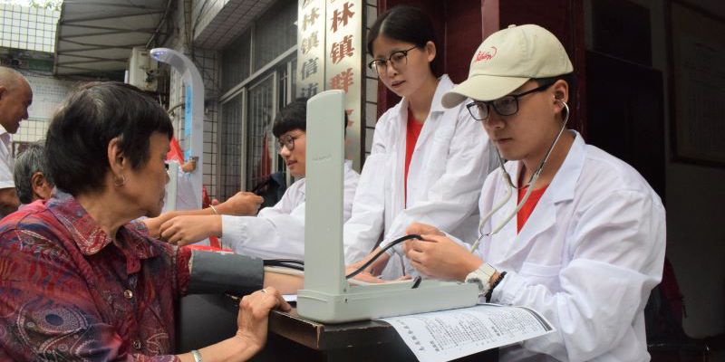 现代农业与生物工程学院志愿者们走进重庆市万盛区丛林镇,为当地老人免费测量血压。在认真询问、测量、听测、记录后,志愿者根据大部分老人有血压偏高现象提出建议,通过传单和口述的方式普及膳食健康知识,让当地居民对血压有一定了解。期间,志愿者也采用现场问卷抽样调查的方式进一步了解万盛区丛林镇居民的饮食生活情况。