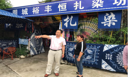 调研组在喜洲古镇周城村与村民交流白族传统扎染工艺问题