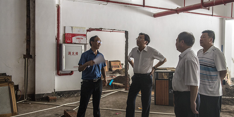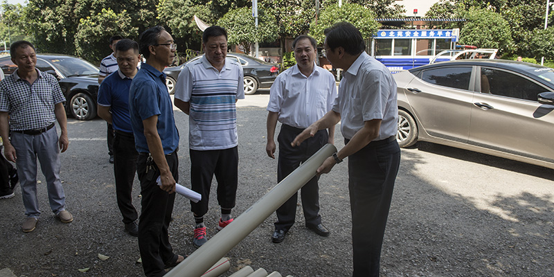 在格理楼,彭书记叮嘱实施生科院实验室改造工程的建设者,在高温环境下注重自身防护,在确保安全的同时抓好工程质量和进度。