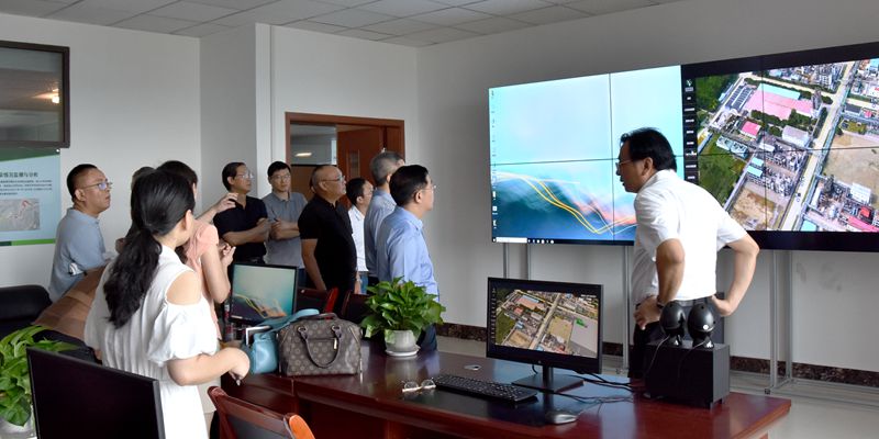 在绿色智慧环境学院,校领导一行观看了生态环境智能监测与污染控制综合实验室,观摩卫星遥感监测系统。