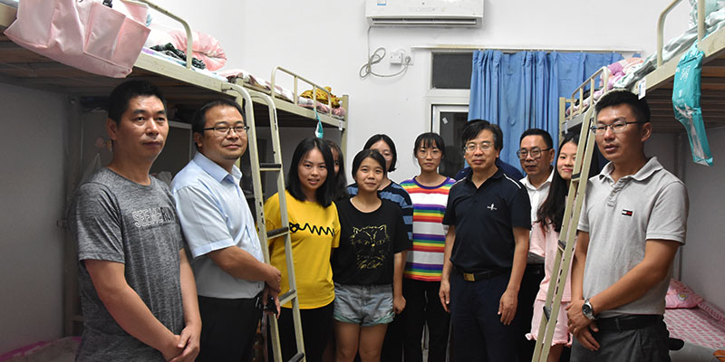 8日晚上,学校校长黄大勇,副校长杨双、向小川率相关职能部门负责人前往学生寝室看望新生。“行李收拾好了吗?热水系统水温合适吗?”在弘马公寓,黄校长亲切询问新生的入学情况和住宿感受,勉励他们在长师学有所成。在留学生公寓,黄校长了解新生的入住情况后与留学生们进行交谈。
