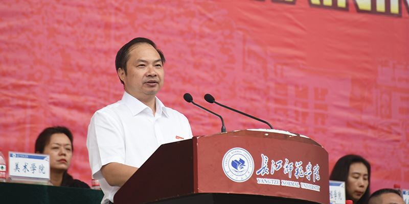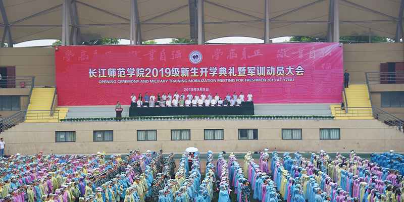 99日上午,我校隆重举行2019级新生开学典礼暨军训动员大会,秋雨霏霏,全体2019级新生齐聚行健体育场。学校校长黄大勇,党委副书记戴玄,副校长蔡其勇、袁革、杨双、张明富、向小川,纪委书记赵骏,相关职能部门、二级学院负责人,武警重庆总队执勤第四支队副支队长张晓化等出席典礼。