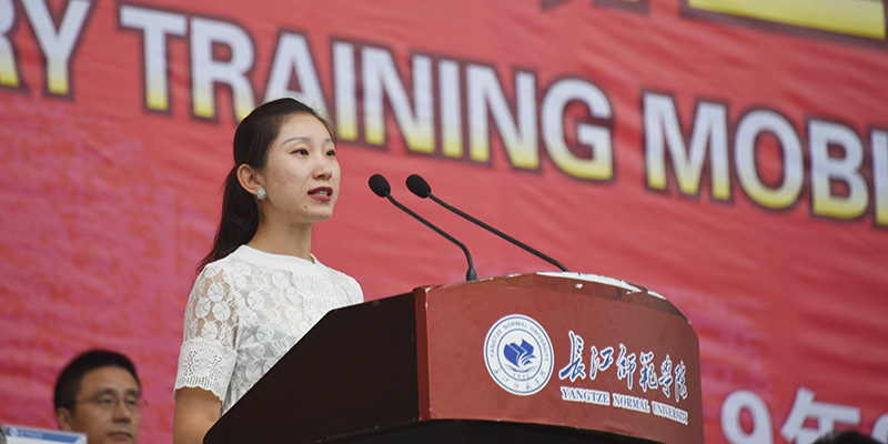 “长师,我们来了!”,来自数学与统计学院2019级应用统计学专业学生颜晓凤作为新生代表发言,她表达了对大学生活的期盼,并呼吁大家向优秀的学长学姐学习,明确自己的目标,做人生的主人和做青春的主人。