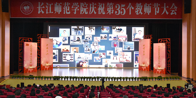9月10日下午,学校在拏云学生活动中心举办第35个教师节庆祝大会。大会隆重表彰了鉴湖学者1名、优秀教师5名、科研创新先进个人7名、重庆市级先进个人3名、国家社科基金获得者11名、国家自然基金获得者11名、师德师风先进个人9名,教坛新秀、教育管理先进个人10名,辅导员年度人物、涪陵区先进个人3名。学校全体在校领导,受表彰人员,离退休教师代表,全体教职工,学生代表参加大会。