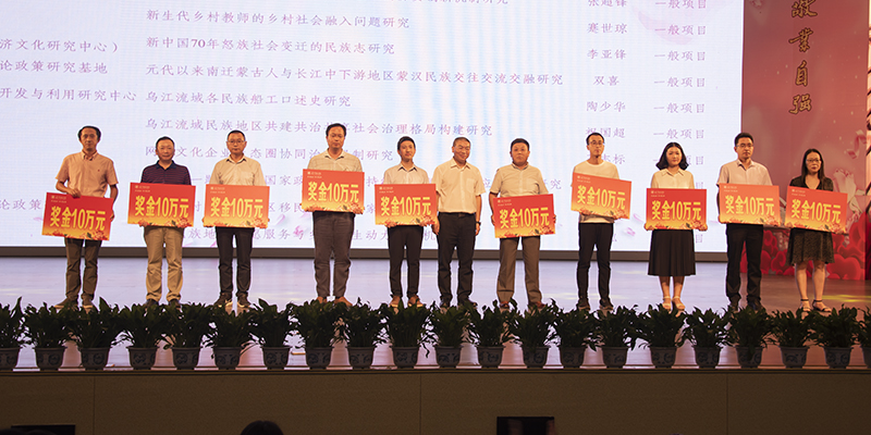 副校长张明富为获得国家社科、自然基金获得者颁奖。