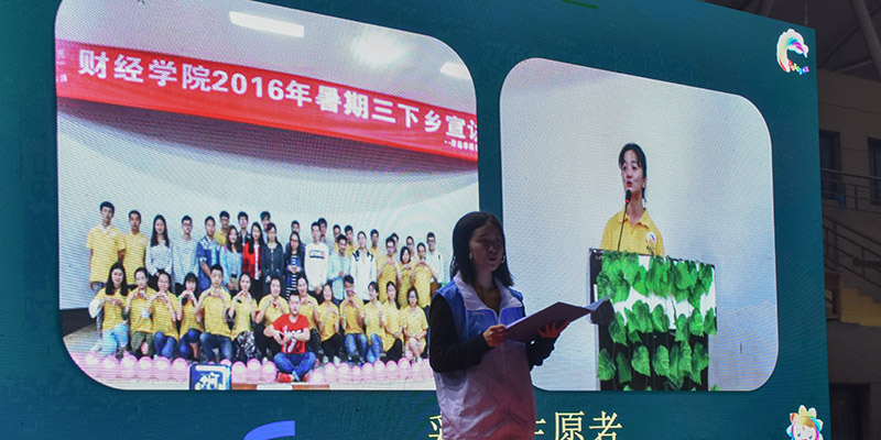 财经学院“彩虹之家”公益筑梦团2016级学生代表刘青青和张峻豪,讲述了他们在志愿服务中付出的青春汗水以及收获的精神食粮。2010年成立至今,“彩虹之家”建立了8所留守儿童市民学校,共计2000余名彩虹人参与志愿活动为孩子们送去希望。
