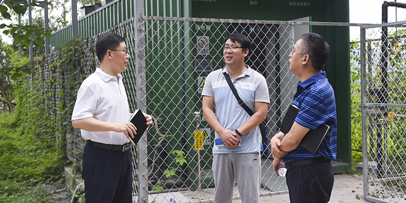 在学校实验固废物品中转站,校领导一行走进实验室废弃物户外暂存柜系统,对站内存放的化学物品进行检查。针对危化品的存取使用问题,蔡校长提出要加强对废弃化学物的管理,对物品加上标签,以高标准对物品做好科学分类。