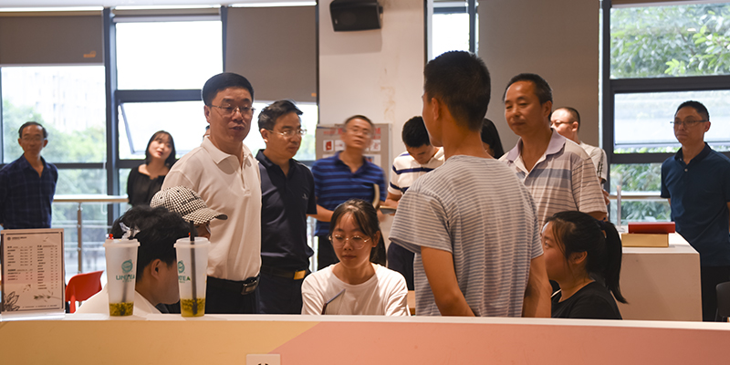 在南苑食府售菜窗口,蔡校长向工作人员了解菜品的供应与学生口味偏好,并亲切询问正在用餐的同学对食堂环境的评价、价格的接受程度、用餐时间是否紧张等问题,希望同学们有意见及时反馈给食堂管理人员。