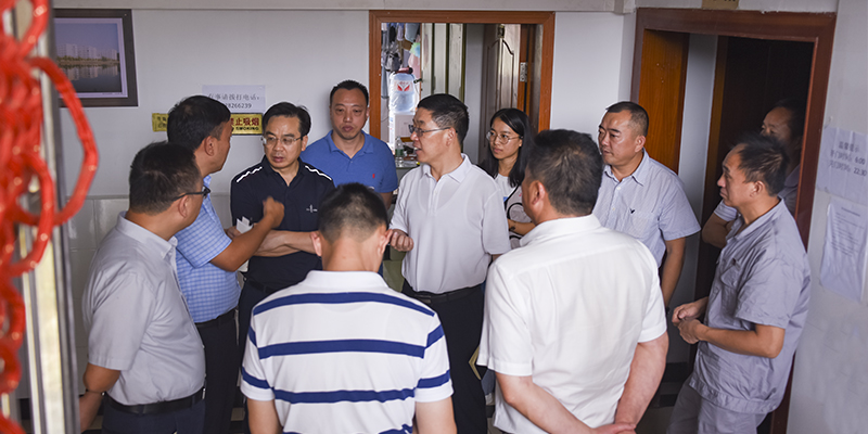 在北苑学生社区弘马公寓A区,蔡校长对宿舍楼的消防通道与安全管理工作进行检查,并询问工作人员的值班情况。校领导们走进宿舍与学生进行交谈,针对学生提出的意见和建议,蔡校长要求相关部门要及时整改,保证学生的住宿安全。