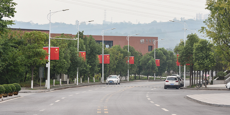 学校“崇”字教学楼及主干道处分别用竖幅五星红旗装饰,在秋风的吹拂下,鲜艳的五星红旗在空中飘动,成为了长师校园一道靓丽的风景线。