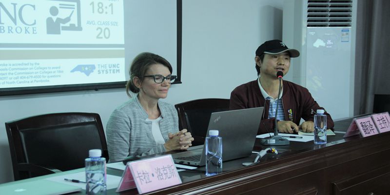 Carla rokes 教授介绍了北卡罗来纳大学的学校历史、地理位置、招生人数、课程科目等基本情况。她讲解了该校艺术系的基础设施建设,以及艺术教育学课程的组成部分、学位获得的程序,让在座师生对北卡罗来纳大学彭布罗克分校艺术系有了清晰而准确的认识,加强了双方院校在艺术培养教育的交流。