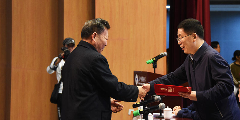 蔡家林校长和袁革副校长到寿星席为寿星赠送礼品。