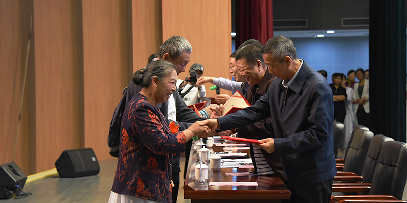 在座领导为获得“我和我的祖国”主题征文个人奖的老同志颁奖。