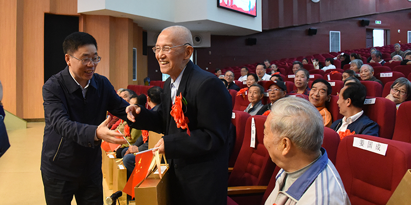 1015日上午,学校在拏云学生活动中心召开2019年重阳节庆祝大会。学校校长蔡家林,副校长袁革,学校离退休老干部刘国方、彭规荣、卢吉庆、傅显捷,离退休老教师、老同志近300人出席大会。会议由副校长杨双主持。