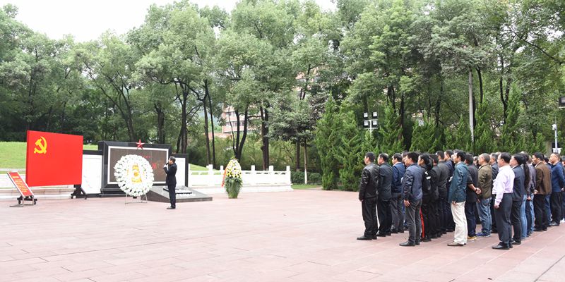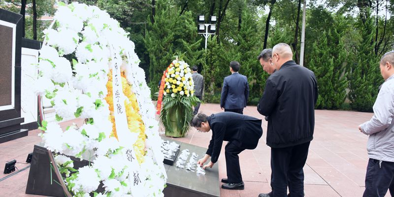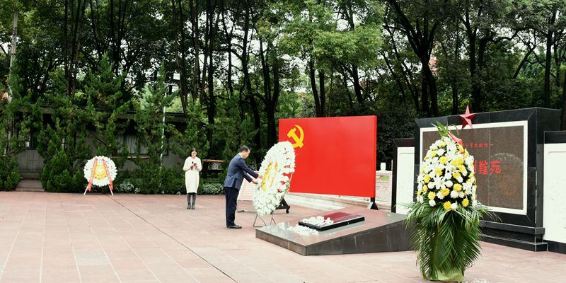 中午12点半,杨双、赵骏率各职能部门、二级学院党员干部驱车前往红岩村。在歌乐山烈士陵园,全体党员同志神情肃穆,在党徽下方佩戴小白花,集体向革命烈士默哀、鞠躬,赵骏同志代表全体同志敬献花圈。在烈士陵前,杨双同志领誓,全体党员干部在党旗下宣誓、重温入党誓词,向革命烈士们表述作为共产党员“不忘初心、牢记使命”的誓言决心。