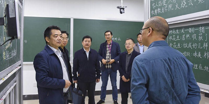 评估专家组到教师教育学院回访复查本科教学工作的进展情况,李源田高度评价了我校智能教学硬件配套设施。