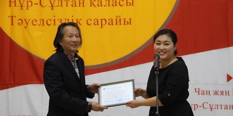 努尔苏丹市独立宫向我校卢晓波教授颁发证书