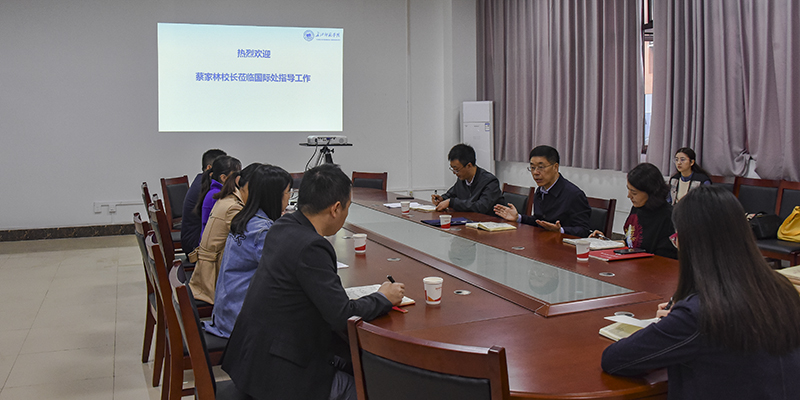 在国际学院,蔡家林校长与参会教师深入研讨师资协调、辅导员考核制度等问题,蔡校长提出四点要求:一要切实抓好主题教育,通过丰富的主题教育活动内容,提高师生党性修养;二要切实强化特色服务,借鉴经验,思考精细化个性服务;三要切实注重因材施教,立足学生实际情况进行教学,进一步加强国际交流、促进国际合作;四要切实加强舆论管控,要及时进行舆论引导,守住底线,保持松紧有度,遇到难题要及时向学校上报,寻求适当的解决方法。