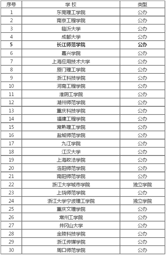 日前,根据人民日报、人民网、新华日报消息,“中国新建(应用型)本科高校综合竞争力排行课题组”(ICAUR)正式发布“中国新建(应用型)本科高校科研竞争力排行榜”,从论文、课题、奖励、发明专利等四个维度对全国693所新建(应用型)本科高校科研情况进行客观评价。重庆市共有3所高校进入全国新建(应用型)本科院校30强,长江师范学院科研竞争力位居全国第五。