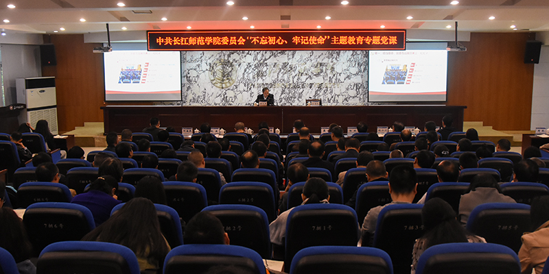 10月31日下午,学校在鉴湖学术报告厅召开“不忘初心、牢记使命”主题教育专题党课, 党委书记黄大勇以“守初心 担使命 共同谱写学校事业发展新篇章”为题,从“什么是中国共产党人的初心和使命”“如何坚守初心,担当使命”“当前学校应着力解决好的突出问题”“青年人才作用发挥”等四个方面,分享了学习习近平新时代中国特色社会主义思想的心得体会。市委巡回指导组第十七组副组长崔洪强、祝文祥到会指导,我校全体校领导、党委常委,科以上干部、基层党支部书记和师生代表近300人参加会议。党委副书记、校长蔡家林主持会议。