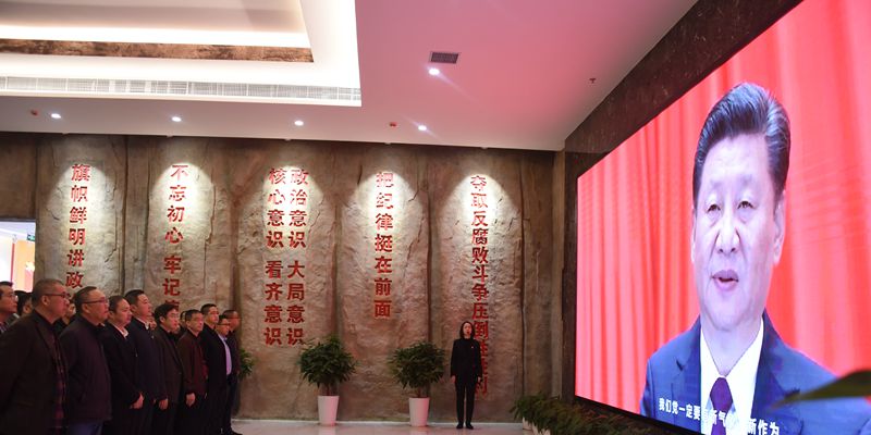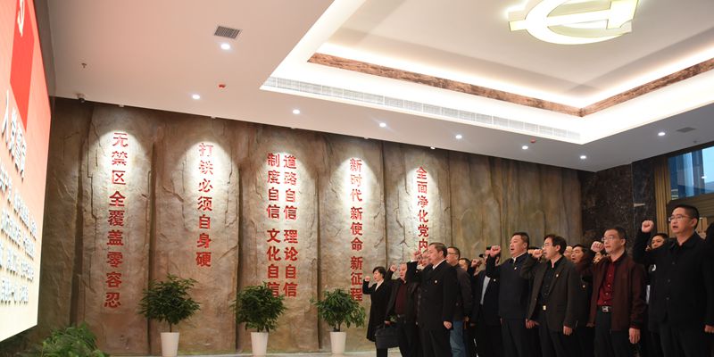 观看了专题教育短片《总书记的告诫》后,黄大勇书记带领全体干部重温入党誓词,党员干部都举起右手庄严宣誓,用坚定的声音宣告作为共产党员的初心使命,现场庄重严肃。