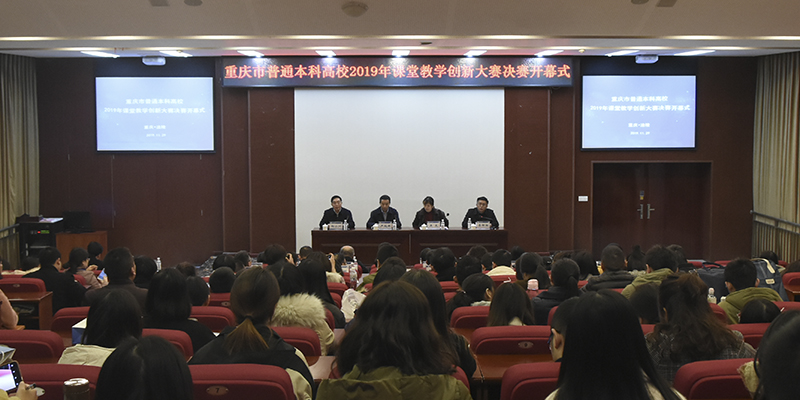 11月29日,由重庆市教育委员会主办、我校承办、重庆市高等教育学会协办的重庆市首届普通本科高校2019年课堂教学创新大赛决赛在我校举办,大赛以“创新课堂教学,推动课堂革命”为主题,以习近平新时代中国特色社会主义思想为指导思想。当天上午,大赛决赛开幕式在我校玉衡学术报告厅举行,重庆市高教学会常务副会长严欣平,重庆市教育委员会高教处副处长吴岚,我校副校长向小川,大赛全体专家评委及各高校参赛师生出席开幕式。