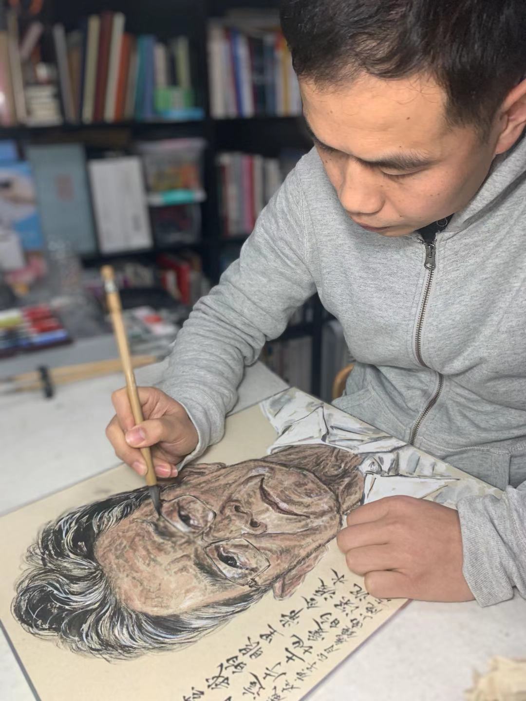 在画中,冯廷祥老师深情写下:“为什么我的眼里常含泪水,因为我对这片土地爱得深沉。”以艾青的诗句讴歌战斗在疫区前线的先进人物,用画笔彰显他们大无畏的牺牲精神。用美术作品致敬最美逆行者,是我校师生助力防控疫情的缩影。