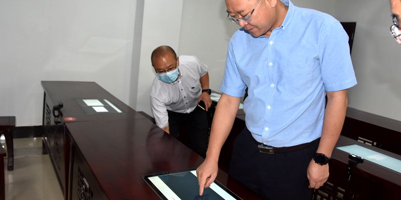 在机器人工程学院,黄政一行考察了重庆现代交通技术合作研究中心,参观了无线电充电汽车、光传感技术实验室、AI赋能实验室等。黄政了解了我校与北京交通大学、山东科技大学合作事宜,询问高层次人才引进、人才培养、学科建设等;在参观页岩气光纤传感智能检测项目和智慧城市项目时,黄政指出,这个项目十分有前景,要做好产业化转换,提升科研项目的应用性,努力成为经济发展的新动能。
