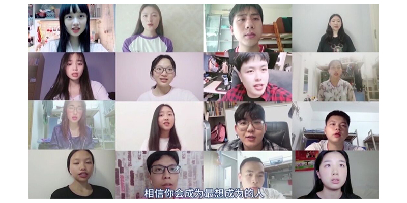 绿色智慧环境学院2018级环境科学专业1班的同学们为即将毕业的“代班”送上了“云合唱”。受疫情影响,该班同学没能当面为学长学姐说一句“毕业快乐”,在班委的组织下,全班同学一起完成了线上“云合唱”《你曾是少年》。从策划到拍摄制作,历时17天的时间,全班同学完成了70多条视频、40多条音频,形式新颖活泼,收到祝福的毕业生们直呼感动。