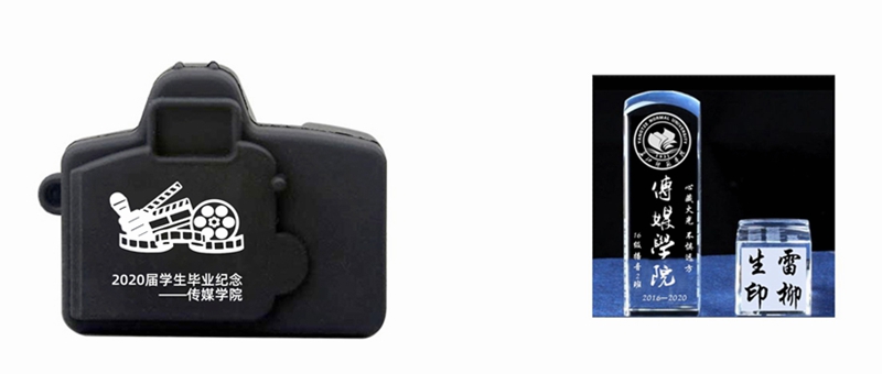 传媒学院为毕业生准备的特制优盘(左)和专属刻章(右)