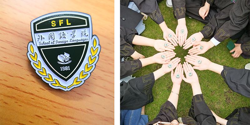 外国语学院暖心为毕业生准备了特别定制的院徽,院徽由该院老师亲自设计,采用浮雕的样式将“外国语学院School of Foreign Language”和学校校徽刻在徽章上,1981代表着外国语学院的前身外语系建立的时间。小小的徽章,设计得别出心裁,蕴藏了老师对于这份礼物的用心和对毕业生美好未来的祝愿。同时,该院还为毕业生拍摄毕业照并赠送毕业合照,纪念美好的大学生活。毕业生们也知恩感恩,集体捐赠帐篷给学院,情意满满。