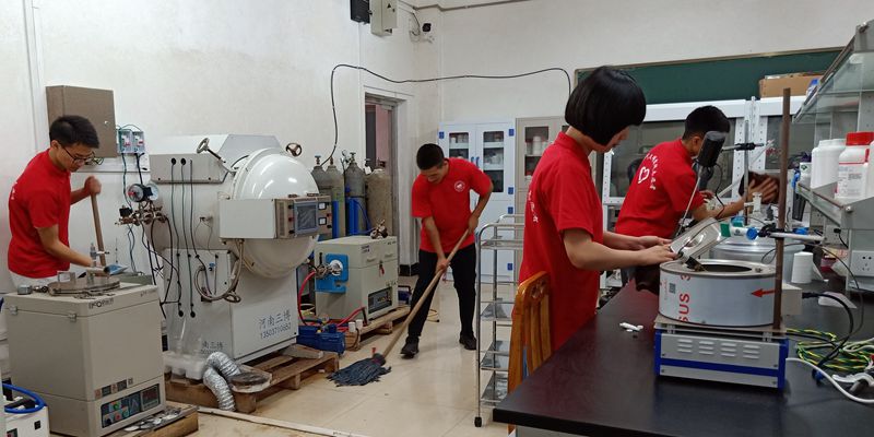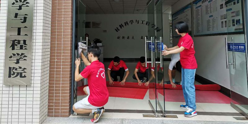 材料科学与工程学院的志愿者们正在仔细清扫实验室与教学楼
