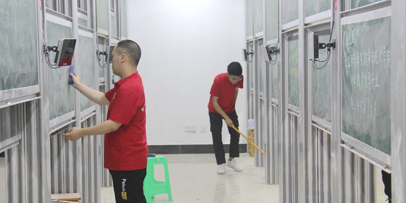 教师教育学院志愿者们对智能实训室进行了清洁打扫。