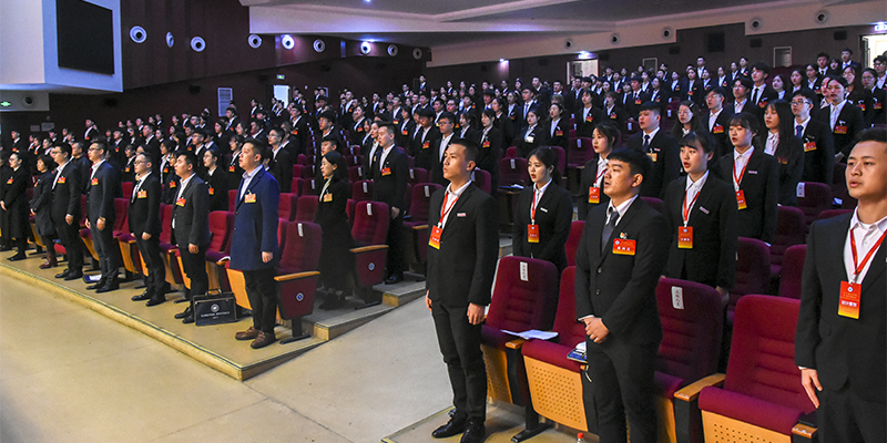 坚定跟党走,奋进新时代。10月30日14时20分,我校第三次学生代表大会在拏云学生活动中心隆重举行。学校副校长杨双,学生工作部部长王东辉,团委书记谢艳,重庆市学联驻会执行主席蔡承元,西南大学学生会执行主席鲁雨晴,各学院团委书记及全校学生代表共计250人参加了大会。