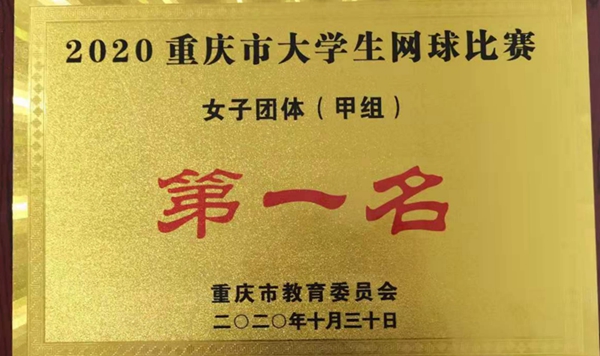 在“2020年重庆市大学生网球比赛”中,我校代表队获得女子甲组团体第一、男子丙组团体第三、女子丙组团体第三的优异成绩。