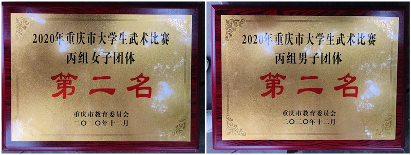 日前,我校体育与健康科学学院学子在多项学科竞赛中荣获佳绩。在“2020年重庆市大学生武术比赛”中,该院学生获得男子丙组(专业组)团体第二名、女子丙组(专业组)团体第二名,我校获得优秀组织奖。