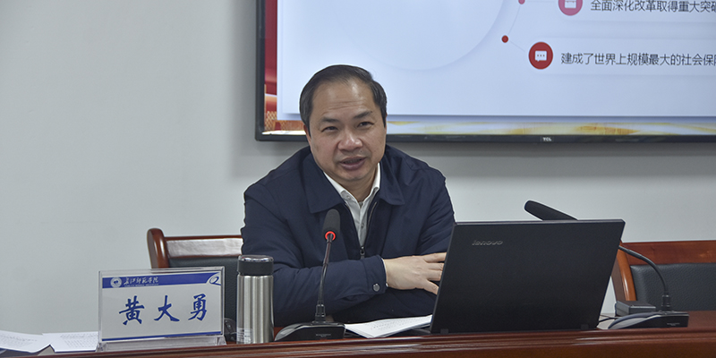黄大勇书记带领培训班全体成员学习了党的十九届五中全会重要内容,并从六个方面宣讲了党的十九届五中全会精神,介绍了坚持和完善中国特色社会主义制度、推进国家治理体系和治理能力现代化的重大意义。
