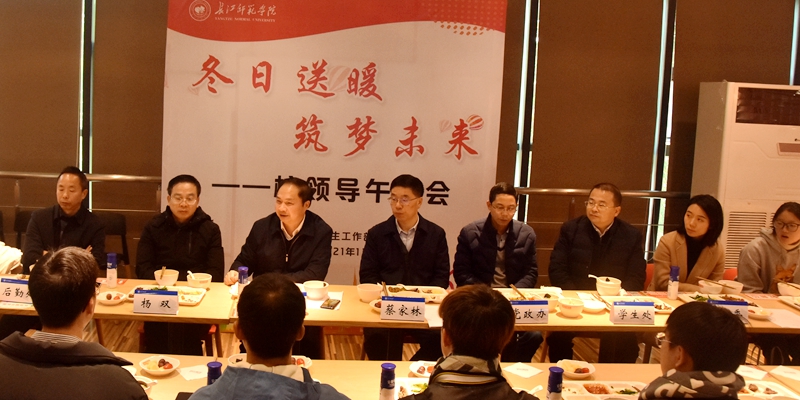 12月2日中午,南苑学生食堂二楼气氛温馨,校领导黄大勇、蔡家林、杨双与来自不同学院的20位学子共进午餐。师生们面对面沟通,心贴心交流,畅谈成长困惑、共话学校发展,现场一片欢声笑语。
