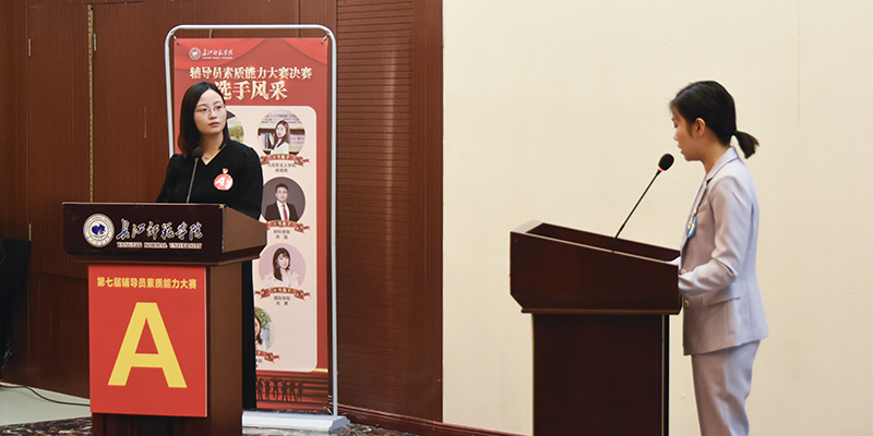 决赛现场,14位辅导员采用AB角签位进行案例研讨,以“我提问、你回答”的方式展开讨论,围绕案例共同辨析原因、研讨对策、总结规律;谈心谈话以情景再现的方式进行,参赛辅导员从分析问题入手,制定改进措施,并结合谈话情况进行总结。经过多轮环节的比拼,马克思主义学院辅导员杨晓艳、电子信息工程学院辅导员邓志平荣获一等奖。