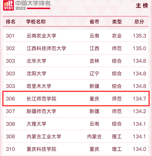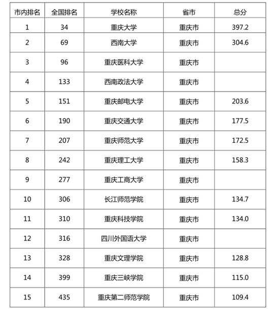 “2022软科中国大学排名”(总榜)重庆高校排行榜 (图片来源:软科)
