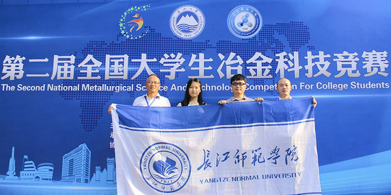 孙靖婷(左二)参加第二届全国大学生冶金科技竞赛与老师合影