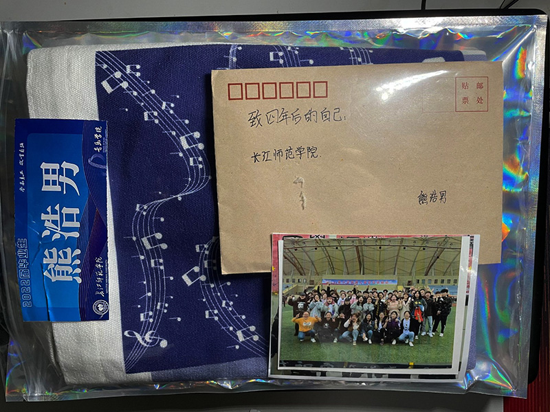 音乐学院为每位毕业生定制了一个“行囊”,行囊里装着帆布袋、两枚刻着学校风景的徽章,以及2022届毕业生大一进校时写给四年后的自己的一封信。这份礼物包含着老师们对毕业生爱与祝福,祝愿他们背上行囊再出发,奔向更美好的未来。