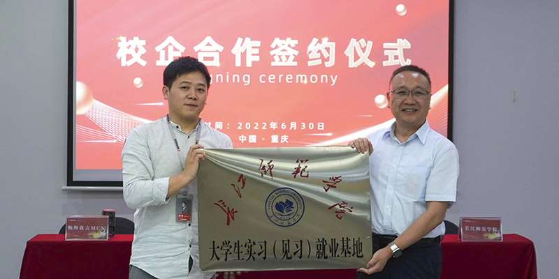 在座谈会上,校企双方围绕产学研合作、实习实训基地建设、毕业生就业等方面进行深入交流。经过洽谈,学校与重庆魅影文化传媒有限公司签订了校企合作框架协议,举行了长江师范学院大学生实习(见习)就业基地授牌仪式。
