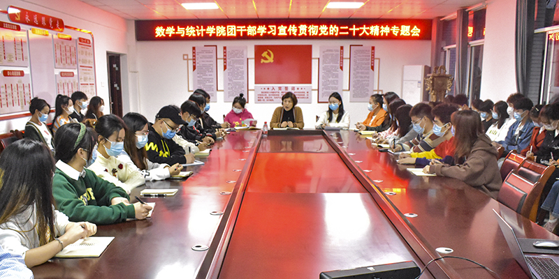 数学与统计学院开展团干部学习宣传贯彻党的二十大精神专题会。会上,教师代表围绕“五个牢牢把握”,带领学生团干部再次学习领会党的二十大报告主要内容和精髓要义,深入了解党的二十大精神的丰富内涵与重要价值,并要求广大团员青年:一要学深悟透报告精神实质,强化思想政治引领作用;二要扎实理论功底,提升业务能力,增强标杆意识;三要处理好群团关系,发挥好枢纽作用。