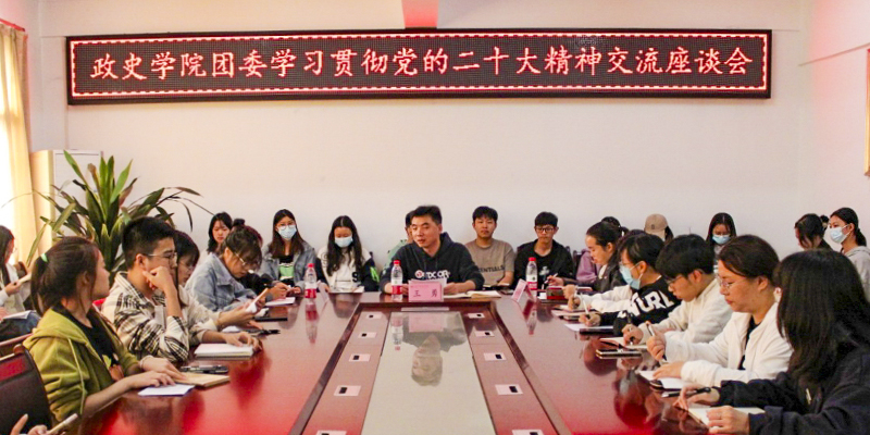 政治与历史学院组织召开学习贯彻党的二十大精神座谈会。座谈会上,同学们围绕学习贯彻党的二十大精神进行了深入交流。同学们表示,将坚定理想信念,深学细悟党的二十大精神,把个人理想追求主动融入党和国家事业之中,不断练就自身过硬本领,提高专业素养和综合素质,争做时代好青年。此外,政治与历史学院历史文化协会还举办了“青春献礼二十大 翰墨丹青颂党恩”书画大赛,用书画热情讴歌伟大时代,深情礼赞党的百年光辉历程和伟大成就。